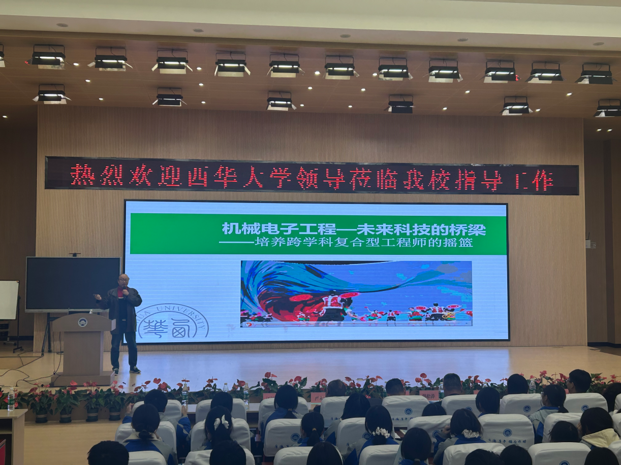 随后,宋春华为同学们带来了一场主题鲜明的机械电子工程专业科普讲座。他围绕机械电子工程专业的课程设置、实践教学体系、科研项目方向等核心内容,结合自身参与的智能制造、机器人技术等研究课题,通过播放技术视频、展示动画演示等生动形式,直观呈现了机械电子工程专业的发展前景与应用场景。同时,他还重点介绍了西华大学在该领域的办学实力、科研平台资源及学生创新创业成果,热忱欢迎广大优秀学子报考西华大学机械工程学院,共同投身智能制造领域发展。