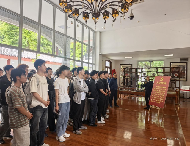 点击:10 为扎实推进党员发展工作,引导入党积极分子在红色教育中坚定理想信念、厚植家国情怀,4月16日,西华大学机械工程学院组织2026年春季学期入党积极分子培训班学员,赴成都工业学院陈毅纪念园开展现场教学活动,并邀请机械工程学院党委委员岳猛老师讲授专题党课。